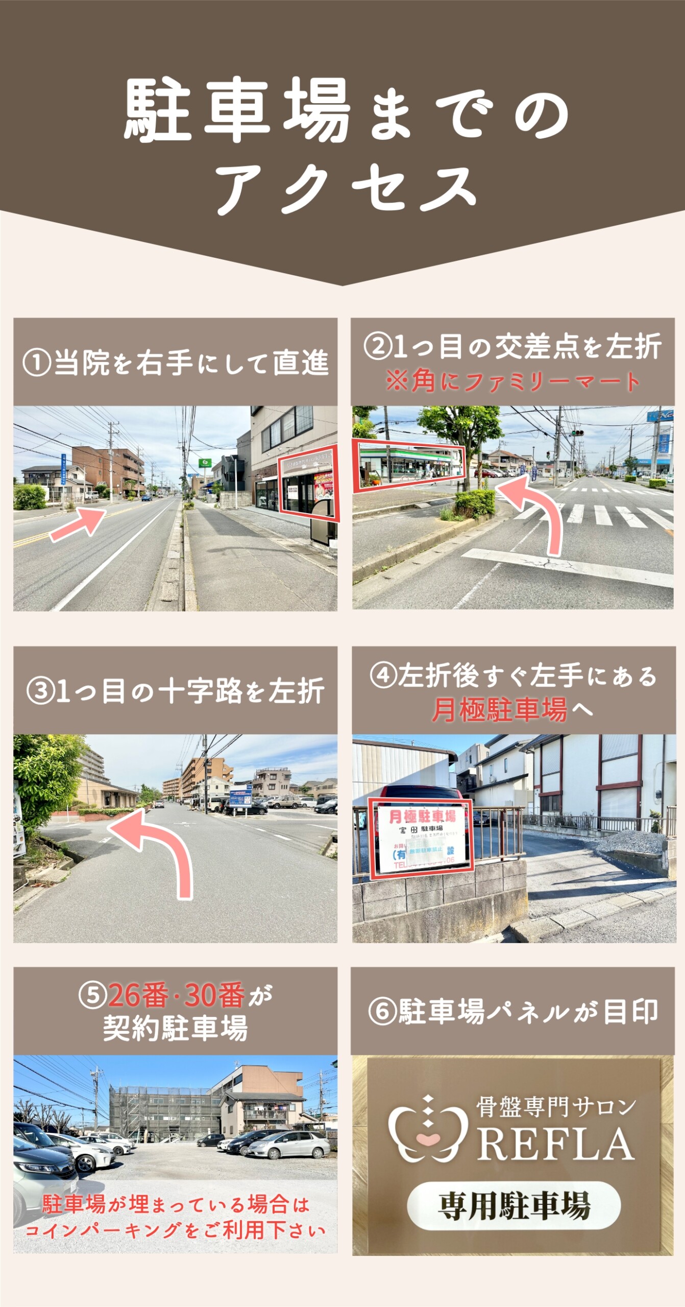 駐車場住所:流山市南流山8-2-3(26・30番が契約駐車場になり、REFLAの看板が目印)